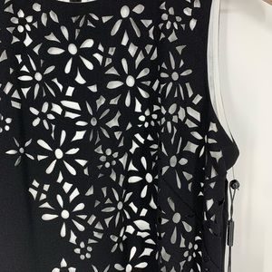 New with tag still attached. Crew neck, sleeveless, back hidden zip with hook-and-eye closure, floral laser cut detail, lined. See photos for details.