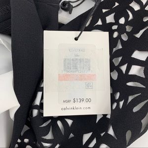 Calvin Klein Black Floral Cutout Shift Dress Crew Neck Sleeveless Size 2 Career