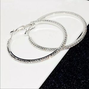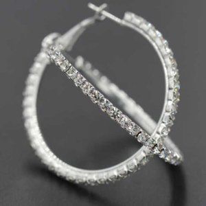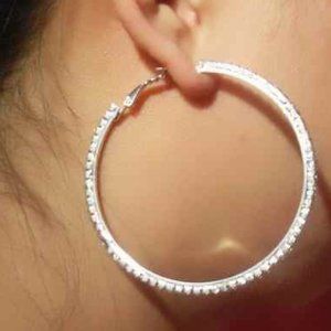 50MM 925 Sterling Silver Coated Zircon Hoop Earrings.