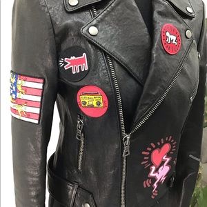 ALICE & OLIVIA x KEITH HARING CODY LEATHER JACKET SMALL RETAIL $1200