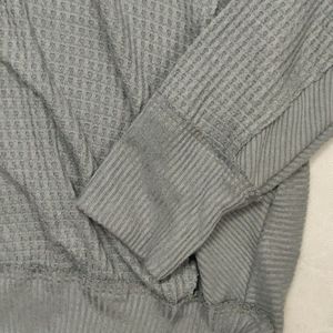 Free People Womens Top Large Gray Santa Clara Thermal Long Sleeve V Neck
