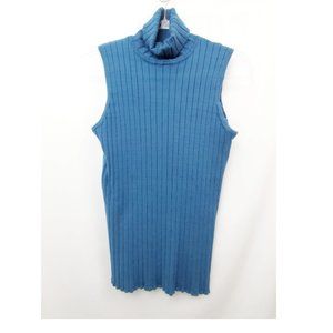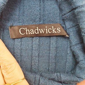 CHADWICKS Teal Blue Ribbed Knit Turtleneck Top EUC
