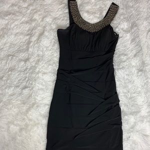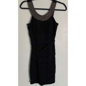 LBD! Black Fitted Dress w/ Beaded Neckline Sz Sm