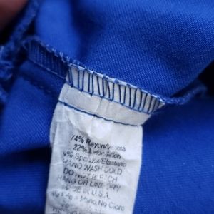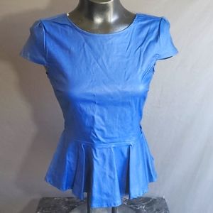 All.B Bright Dark Blue Tulip Ruffle Top Blouse Size small. Form fitting and very cute with a tight pencil skirt! Huge bow in the back and is a bit heavy. In LIKE NEW CONDITION!!