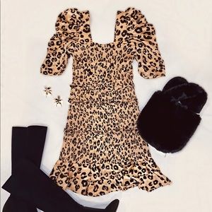 OLIVACEOUS SATIN PUFF DRESS