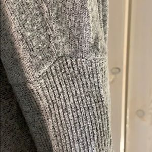 Slouchy crewneck in a cozy fashionable sweater knit just in time for Fall. Wear off the shoulder or around the neck. Pair with our Default Lounge Pant. Crew neck sweater Slouchy neckline Option to wear off the shoulder Hits below the hips Brushed Heather Grey Hacci with Rib. Very Soft Fabric.