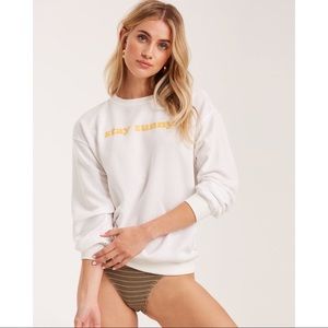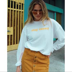 “Stay Sunny” print at chest.
