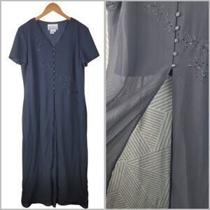 Vtg Disney Pooh size Small Jumper Dress Corduroy Eeyore Embroidered Floral Tan