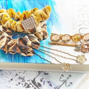 MESSY BUN ACCESORIES IN CAMEL GOLD AND COGNAC V