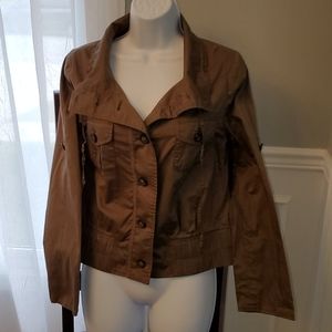 Has such nice detail on top of collar with buttons and strings to tie up as desired