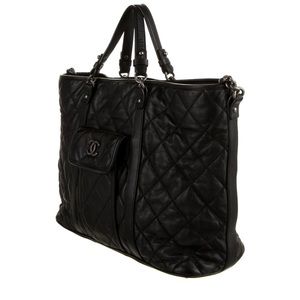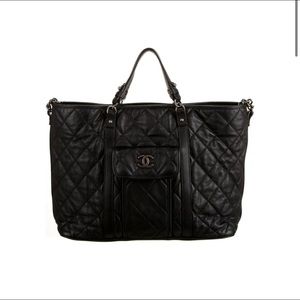 Black quilted leather Large Chanel shopping Tote