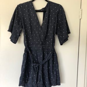 Blue loose flowy romper. A little more formal and nice for a date but super comfortable.