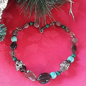 🌟So beautiful! Malachite and smoky quartz chunky necklace from Alexis Bittar. Stones are gradient greens and browns in opaques and solids. Sparkly gold and silver signature wrap around stones that fall on either side of the necklace. Measures approximately 18 inches in length. A stunner! Would make a spectacular gift OR treat yourself!🌟