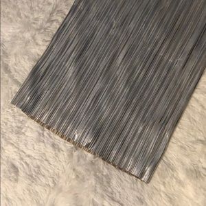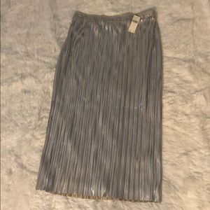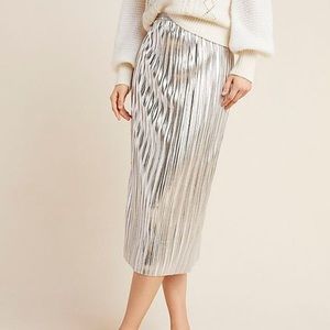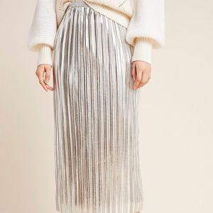 Maeve Anthropologie NWT ($110) crinkly metallic midi skirt. PERFECT for the holiday season. Stretchy elastic waistband. Pleated style. It’s super flattering on. Fully lined. Size 6. Laying flat it’s about 14” across waistband and 31.5” in length
