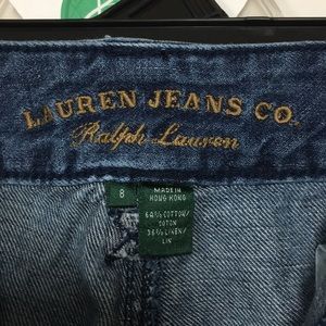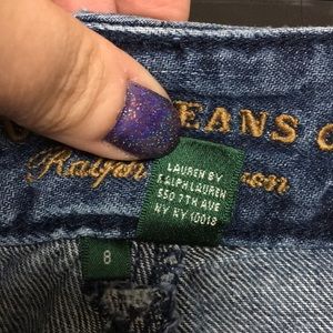These cropped Ralph Lauren Cargo Jeans have ALL the pockets. Two full-size slash pockets in front, two snap-flap back pockets. Three cargo pockets on each leg. Snap and zip fly. Size 8. Two snaps on bottom cuff of each leg.
