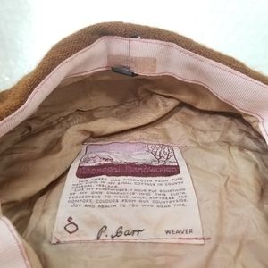 Vintage Irish Donegal handwoven brown tweed flat cap. made from new wool in Donegal, Ireland by P. Barr. size 7⅜. interior sweatband measures 22¼". interior is lined. grosgrain sweatband. snap button on visor. very worn & stained: has lots of character.