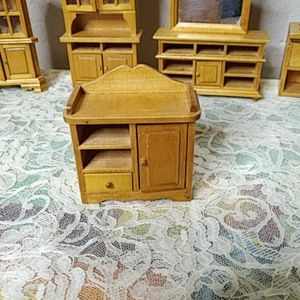 Vintage 12 piece set of doll house wood furniture. This large set has a variety of pieces, the largest of thesse are 6 in tall and then the average others are 3 in tall.