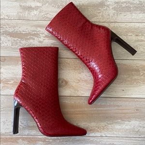 This high heel boot features square toe, mid-calf, plank heel and zipper.