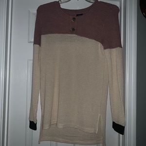 This shirt is super cute, and very well taken care of. I have only worn it a few times and it has no holes or tears! It fits more like a small or medium