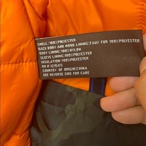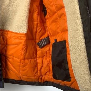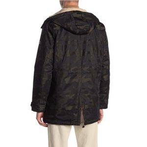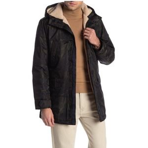 Brand new with tag, Camo print winter jacket by Michael KORS. Otto Faux shearling lined hooded jacket. Hidden front zip closure.