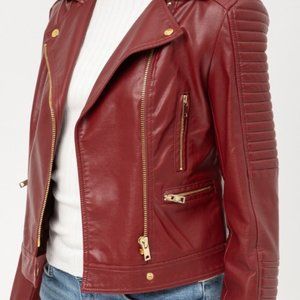 !! LAST ONE !! Faux Leather Moto Jacket - Wine, Size Medium - PRICE FIRM