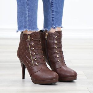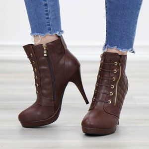 Brown Platform High Heel Ankle Boots
