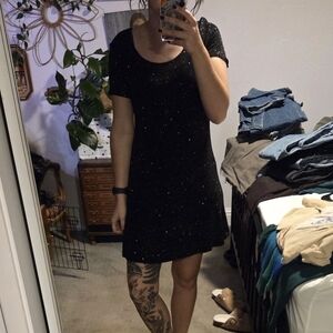 a beautiful vintage 90s Guatemalan dress. it has puffed sleeves and pockets! it is 100% cotton and is a nice thick material. tag says size medium but check measurements. model is 5'2 and a dress size 4. it has an adjustable band with button to make the waist tighter. it amazing condition.