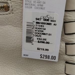 NEW W/ TAGS. Vince Camuto purse with bag, color coconut. bullet button handles. Very chic