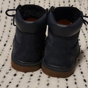 Size 5 toddlers navy blue timberlands. Look almost brand new. In certain lighting looks almost black.