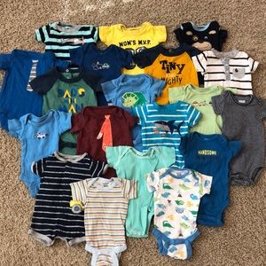 3 short sleeve shirts, 16 onesies
