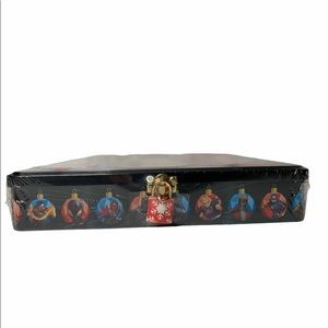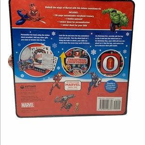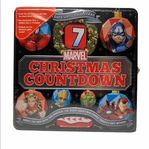 Unlock the magic of Marvel with this deluxe Countdown tin. Turn the wheel on the top of the tin every day to countdown 7 days until Christmas day. On December 25th, the wheel will reveal a key to open the tin! Inside includes a storybook treasury featuring magical stories with favorite characters!
