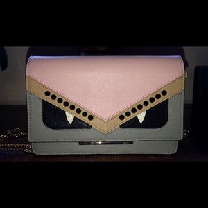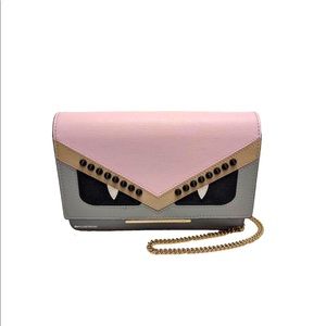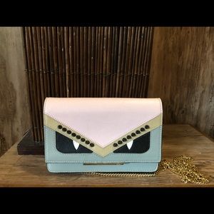 Wallet on Chain Mini Bag Fending Monster Pink and Blue Cowhide Leather Clutch