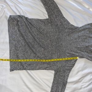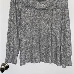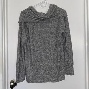 Super cute, never worn (No tags) off the shoulder grey sweater. SIze medium. Rayon/Polyester/Spandex Blend. First photo is the stock photo for reference. Actual sweater is seen in the other photos.