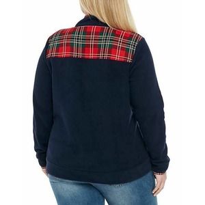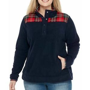 Crown & Ivy 1X Sweeter Fleece Top Blue Red Plaid Long Sleeves Kangaroo Pocket
