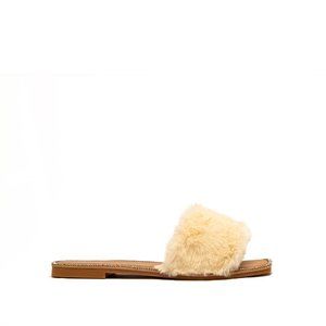 FINAL PRICE! Beige Faux Fur Slide Sandals