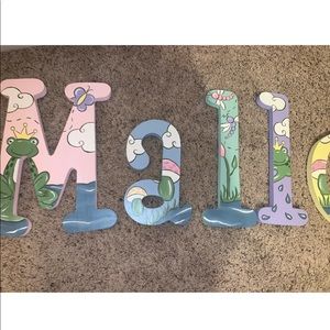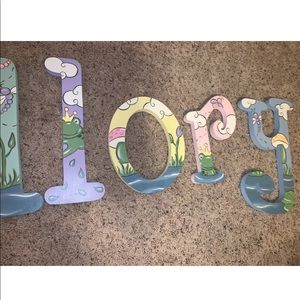 MALLORY handpainted Custom Letters Nursery Girls Wall Hangings Frogs 10-13” Cute. Condition is Used. These hung in my daughters nursery for 2years. In great condition! They have hangers in the back of each letter to hang on nails