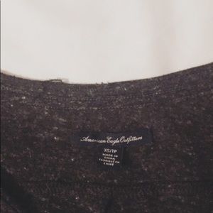 American Eagle Outfitters Grey Shirt with 3/4 length sleeves. This shirt has a little bit of a wider neck than most so, it is probably a good idea to wear with a tank top. This shirt is such a good capsule piece. This classic is an absolute must-have! This could easily be paired with pretty much anything. Pieces like this are so versatile because they can easily be dressed up or down!