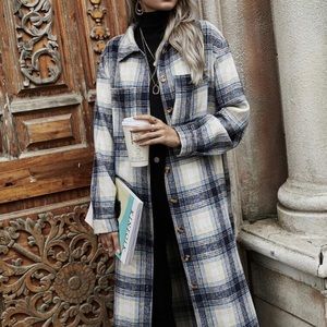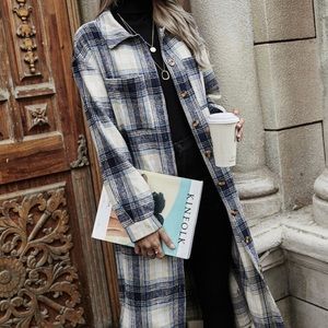 New Plaid Check Flannel Long Shacket Jacket Coat