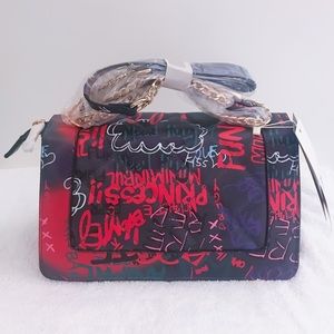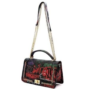 FABULOUS & BEAUTIFUL BLACK GRAFFITI QUILTED CROSSBODY BAG💕