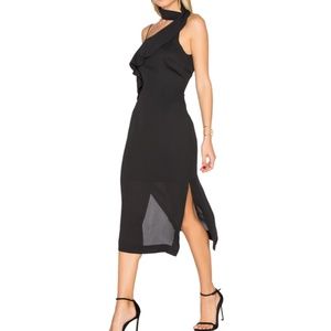 Sexy and elegant black Keepsake Laika midi dress. In new with tags condition. Material 100% viscose and lining 100% polyester. Features a hidden back zipper closure, & is fully lined. Size Large. Approximate Measurements Take Flat Length (chest to hem):42" Armpit to Armpit:18.5" Please see pictures carefully as they are also part of the description.(A2 0183)