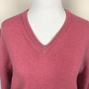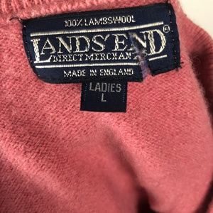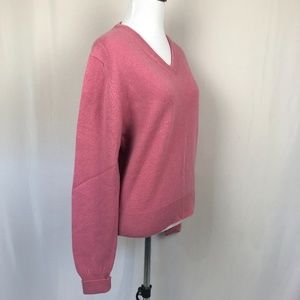 Lands End Lambswool Pullover Sweater V Neck Long Sleeve Pink Large