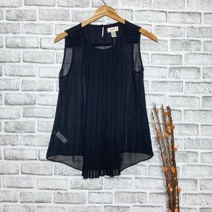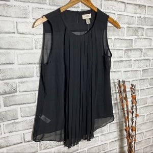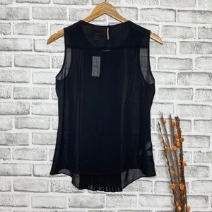 NWT Loft Pleated Black Sheer Sleeveless Top Sz MP