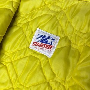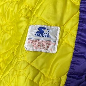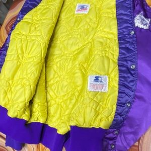 This vintage UW Huskies Starter jacket is in used condition with no rips, holes or smells. It has been worn and does have a couple minor snags and fraying on the stitching. As well as a few very minor stains (all seen in photos). The jacket is a size large and the measurements are as follows...