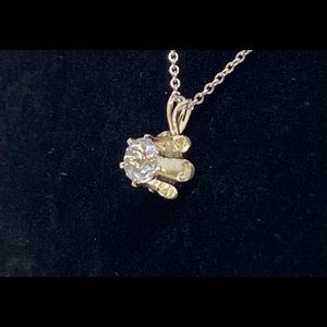 Silver White Solitaire Topaz Stone (approx 1 ct) in a Silver Prong Setting. 925 China Adjustable Chain w/Spring Ring Clasp.