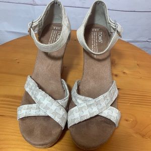 Toms Women US 8.5 Natural Woven Wedge cork Heel