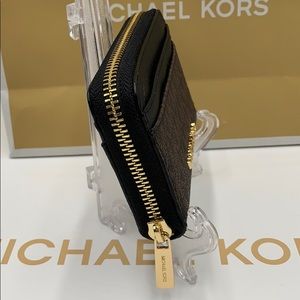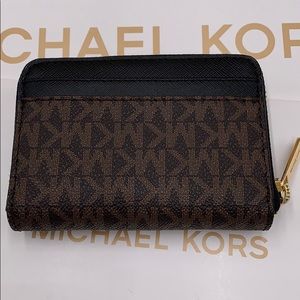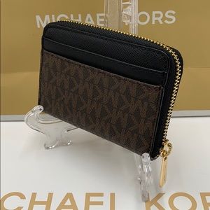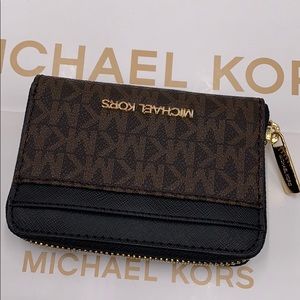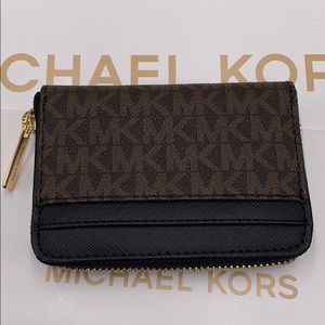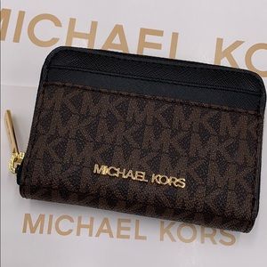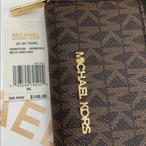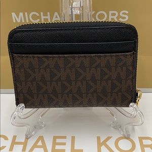 NWT Authentic Michael Kors Jet Set Travel Medium ZA Card Case Brown/Black/Gold