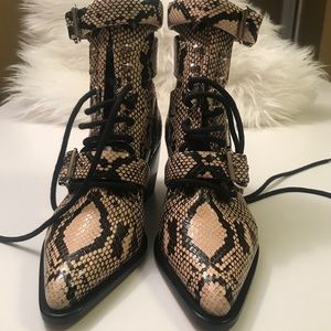 Vamp Style: Lace-up. Upper Material: Leather. Lining Material: Leather. Sole Material: Leather. Chloe Ladies Python Boots
