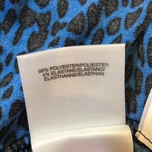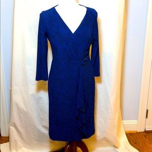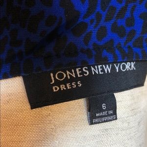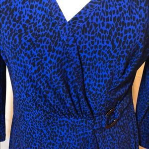 Jones New York blue and black leopard faux wrap dress. Cute black/silver circle “buckle” accent. Like new condition