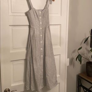 Urban Outfitters striped dress with tie sleeve and button up front.