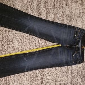 Tag says Size 27, they fit more like 26. They do have some stretch to them. 7 FAMK bootcut Jeans 31.5" inseam. Make offer. :)